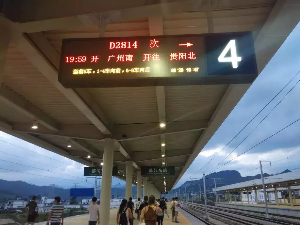 2014年12月26日都匀东站已正式开通运营,都匀东站前往省会贵阳最快仅需47分钟、贵阳龙洞堡国际机场(无转换可直达)只需20分钟、往广西桂林和广东珠三角等方向仅需2-4小时。贵广高铁带动旅游业效益明显,惠及旅游、制造、三农等产业,沿线串联了现代化的都市、"醉"美的山水、浓郁的民族风情等丰富多彩的人文、自然景观,堪称"南中国高铁最美风景线"