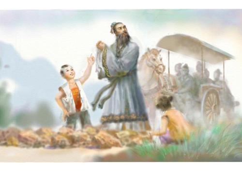 孔子惊叹于项橐的聪明,被深深折服,俯下身对项橐和蔼地说:“后生可