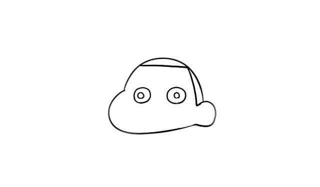 再画出小新的发际线和圆圆的眼睛。