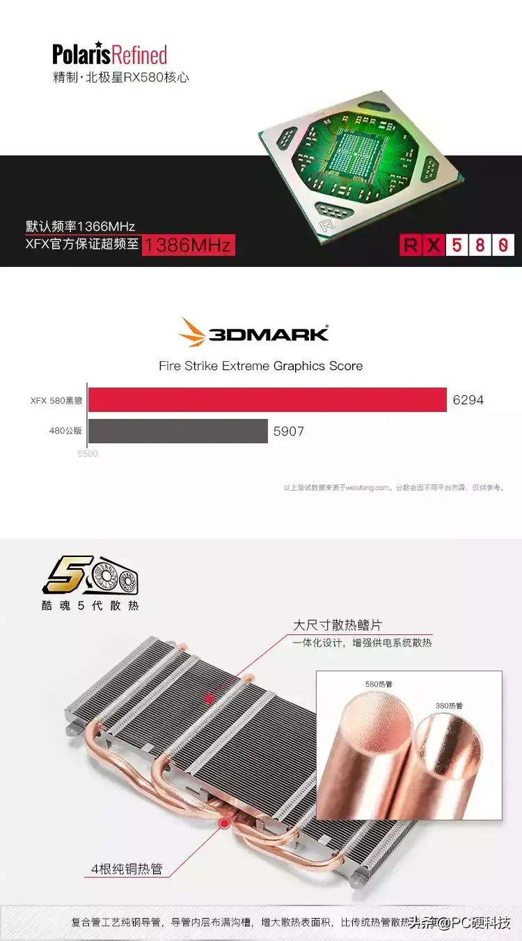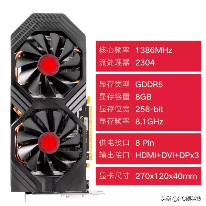 这个价格已经持平 RX 580 2048sp 了,该显卡的用料非常实在,为双风扇设计,搭配酷魂5代散热器,具备大面积散热鳍片再加上4根纯铜镀镍热管,有着不俗的散热效能不用担心温度过高等问题,同时还兼顾了供电VRM散热,可进一步延长显卡的使用寿命,采用精选的 RX 580 核心,流处理器是 2304 个,频率可加速至1386MHz 在580里算高的,搭配8GB GDDR5显存,位宽256bit,速度 8Gbps 可提供 256GB/S 的带宽。