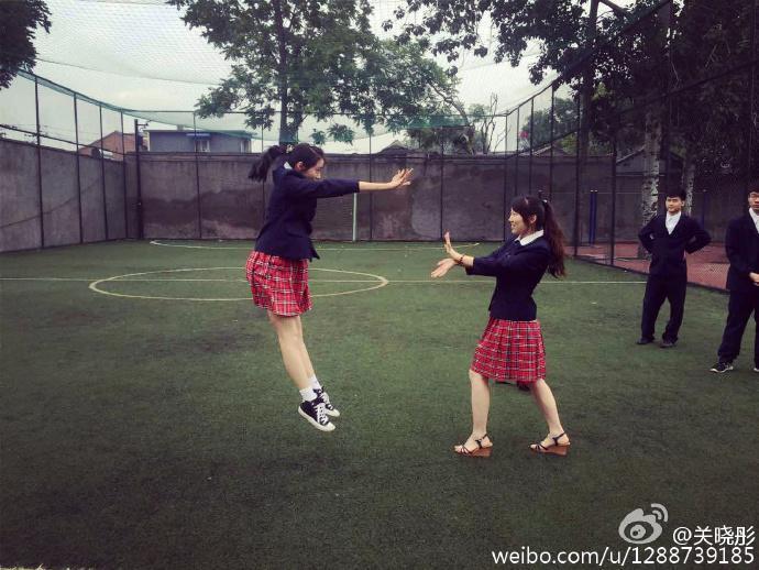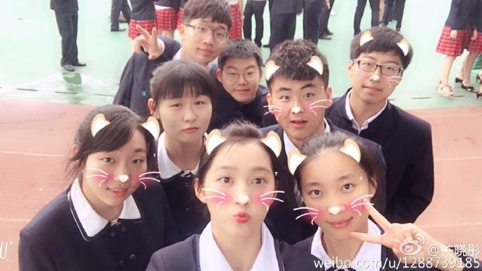 关晓彤与同学关系非常好,照片中很多都是与同学搭肩,嘟嘴玩亲亲的照片。