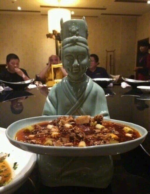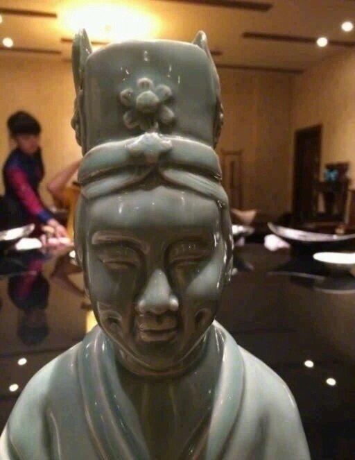 据台湾媒体报道,日前有网友在餐厅用餐,发现餐厅用着一个高级陶瓷盘装菜餚,陶瓷盘的外型是个古代人,端着盘子跪着上桌的模样。仔细一看,发现这个古代人竟然与林俊杰极相似,就连酒窝的位置也相当符合。不禁让网友直呼:“确认过眼神,是林俊杰本人~没错了”。