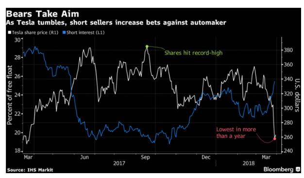 摩根士丹利分析师Adam Jones警告称,这也许只是特斯拉股价"自由落体"的开始。股价下跌会有连锁反应,对于一个需要外部融资来支持其战略的公司来讲,股价下跌容易形成恶性循环,导致股价波动性的进一步加剧。特斯拉烧钱速度惊人,2017年全年损失20亿美元,去年融资之后已经烧掉34亿美元的现金了,截至去年底,其账上也就仅剩下34亿美元的流动性。