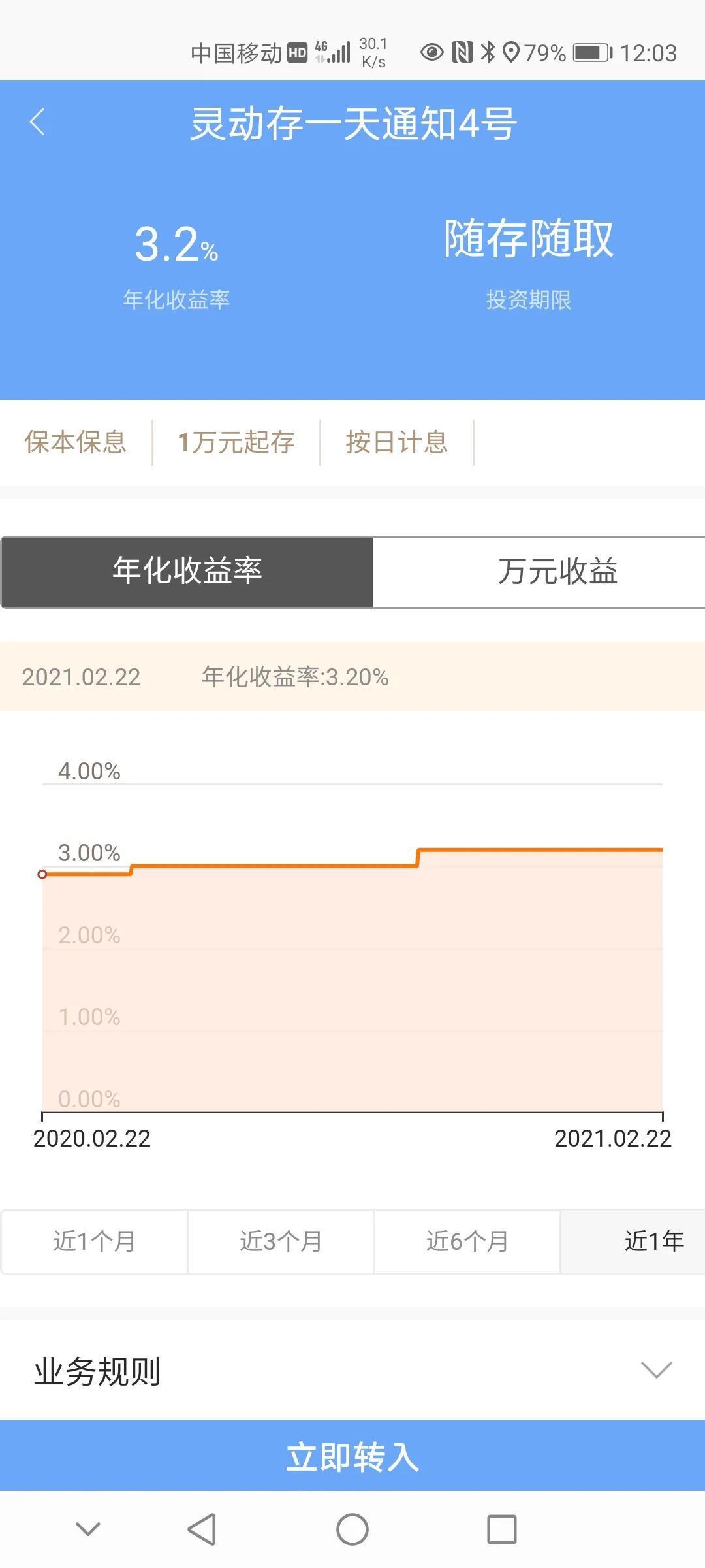 3、类活期产品灵动存,1万起3.2,日付,适合随时用款的,有时限售。