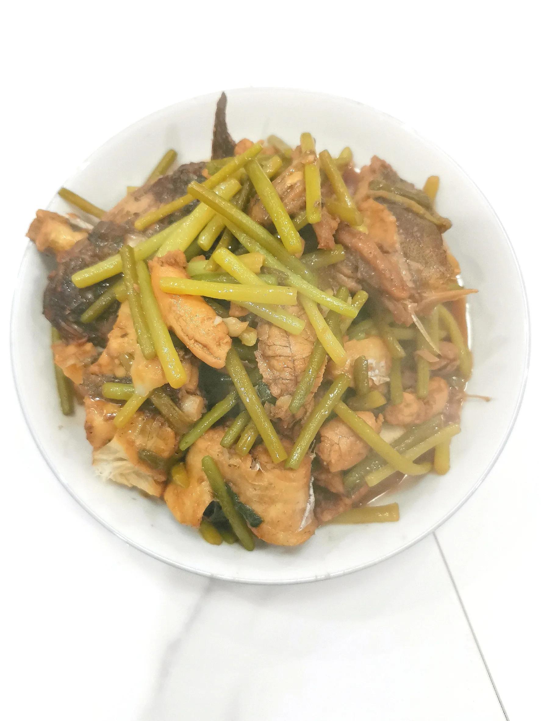 应季海鲜-红烧狗腿鱼(烧蒜苔)