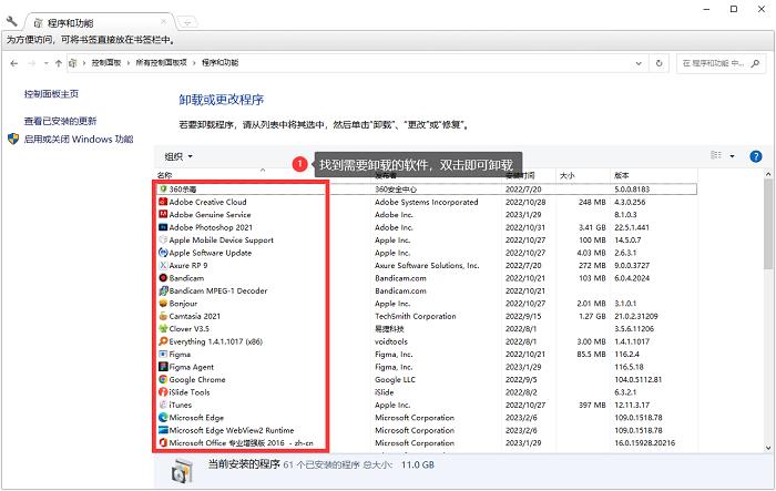 步骤2:点击【程序和功能】,找到需要卸载的软件后,双击即可打开卸载程序对软件进行卸载。