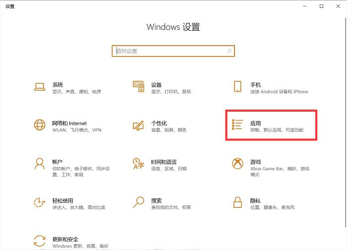 步骤1:使用快捷键【win+i】打开“Windows设置”,接着点击【应用】。