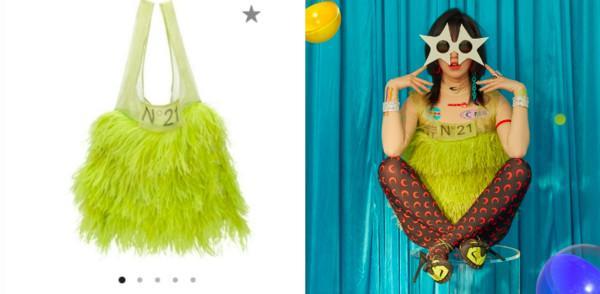▼Wendy过去也曾把包包穿在身上,泫雅则是袜子拼凑成性感上衣。(图/翻摄自泫雅IG、Dispatch)