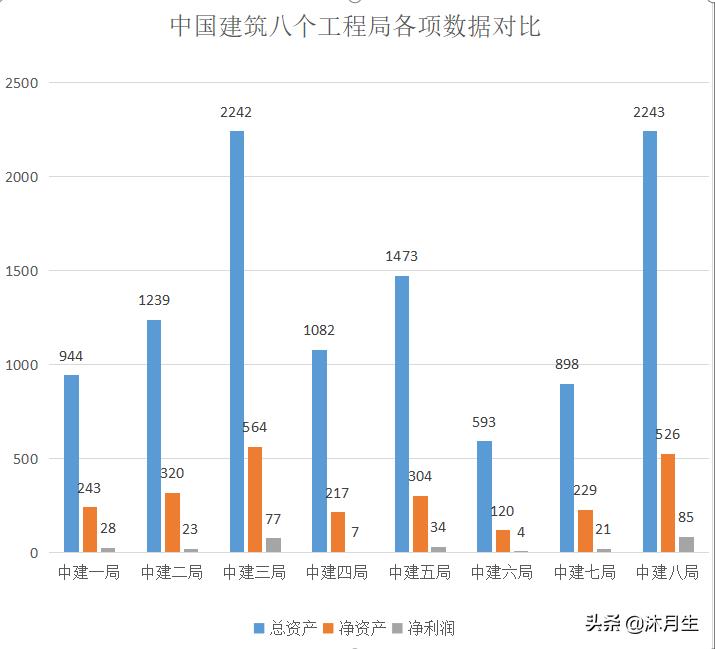从净利润来看,排名第一档的为:中建八局和中建三局