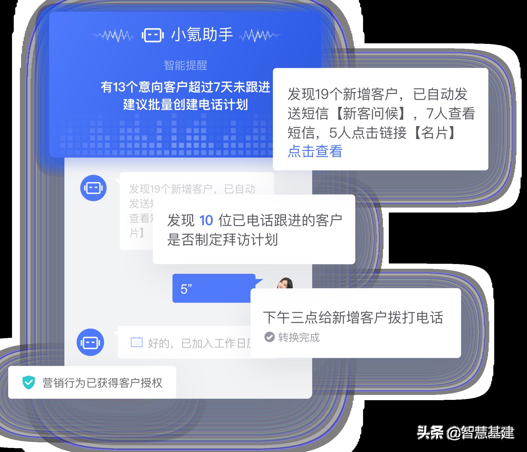 智能PUSH客户跟进与待办事项主动式Push销售跟进客户、推进商机,提醒销售工作任务与待办事项智能判别客户状态、批量自动营销机器学习销售跟进习惯+主动追踪客户行为,智能提供营销建议,提升转化效果智能分析业务数据、异常情况预警工作任务、业绩推进等数据实时分析,智能预警异常数据及状况,出具改善建议