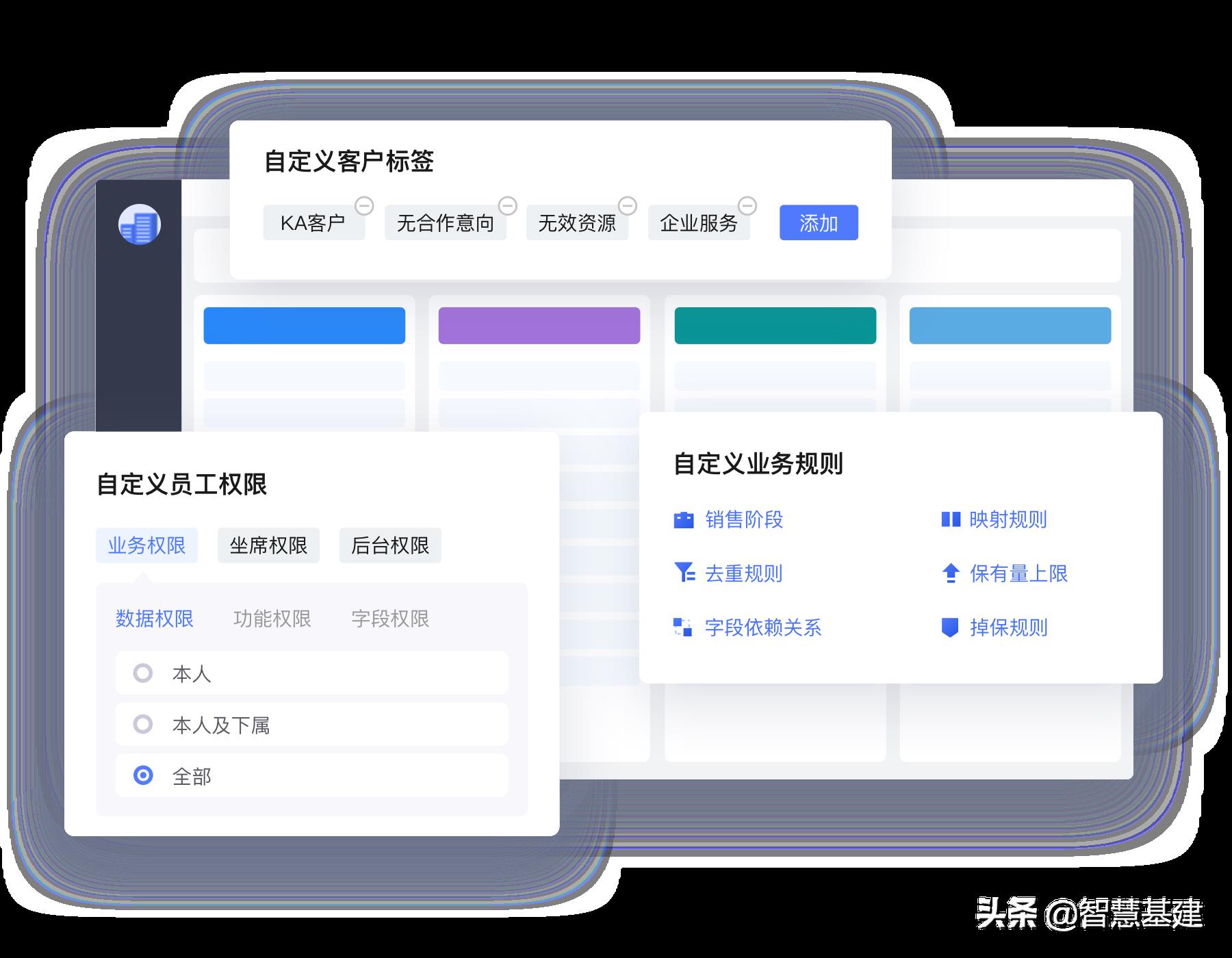 客户标签自定义自定义常用客户标签,销售个人便捷勾选,企业沉淀客户画像业务流程自定义自定义匹配企业需求的业务流程,有效提升客户管理与销售管理效率员工权限自定义根据员工岗位与职责,自定义可使用功能、可查看数据、可更改设置的权限,规范CRM使用管理
