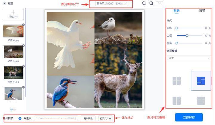 可以看得到,系统已经自动为我们无缝拼好了图片。如果你还想对其进行其它操作的话,也可以在右边的工具栏中对边框、边距等选项进行进一步的调整。在确认无误之后,我们点击保存,便可以得到需要的图片了。