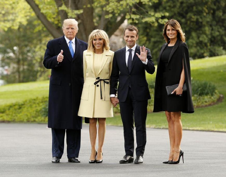 随着马克龙访问美国,65岁的布丽吉特和48岁的梅拉尼娅同台,竟然发现布丽吉特的腿型比曾经是超模的梅拉尼娅还要好看!一身米黄色的大衣,侧面的黑色的蝴蝶结尽显精致!两位第一夫人同台,布丽吉特给马克龙长脸了呢!