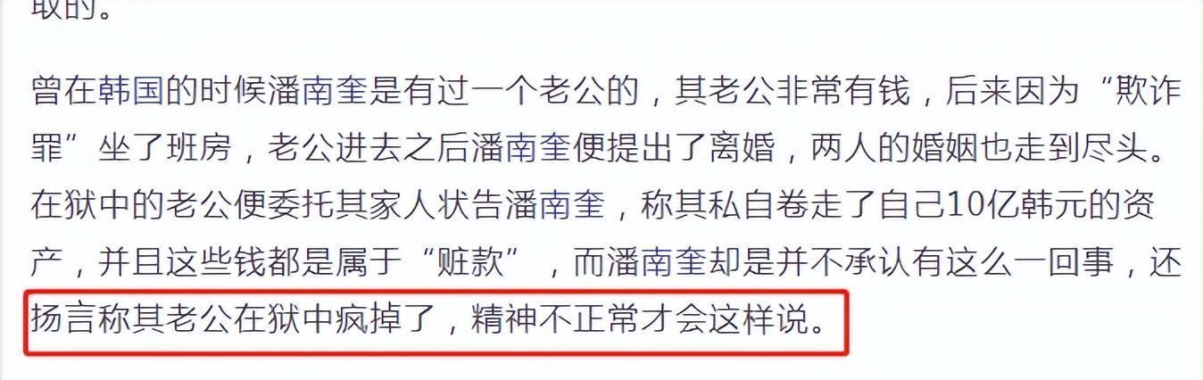众所周知,潘南奎在韩国的绰号叫“潘花蛇”,传闻她在丈夫落难后掏走10亿作为自己的整容经费,混不下去了才“出口”到中国。