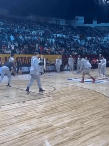 戈登没让大家失望,一记侧面打板空中转身单手扣篮,动作舒展,让众人惊艳,果然他还是他啊!