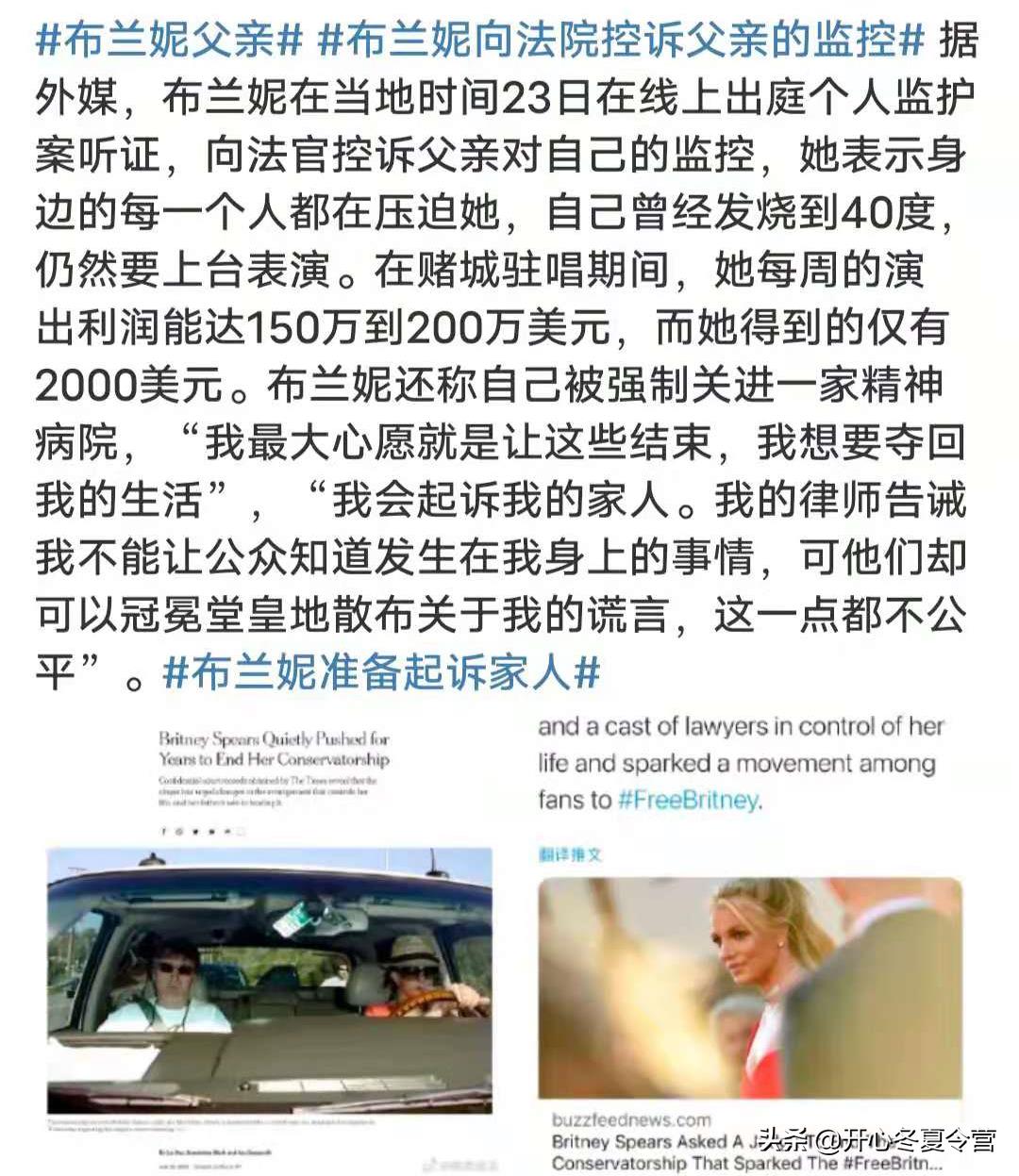 此时布兰妮是个28岁的成年人,关系疏远的亲生父亲却趁机宣布了她的“精神病”,并接管了她的监护权。