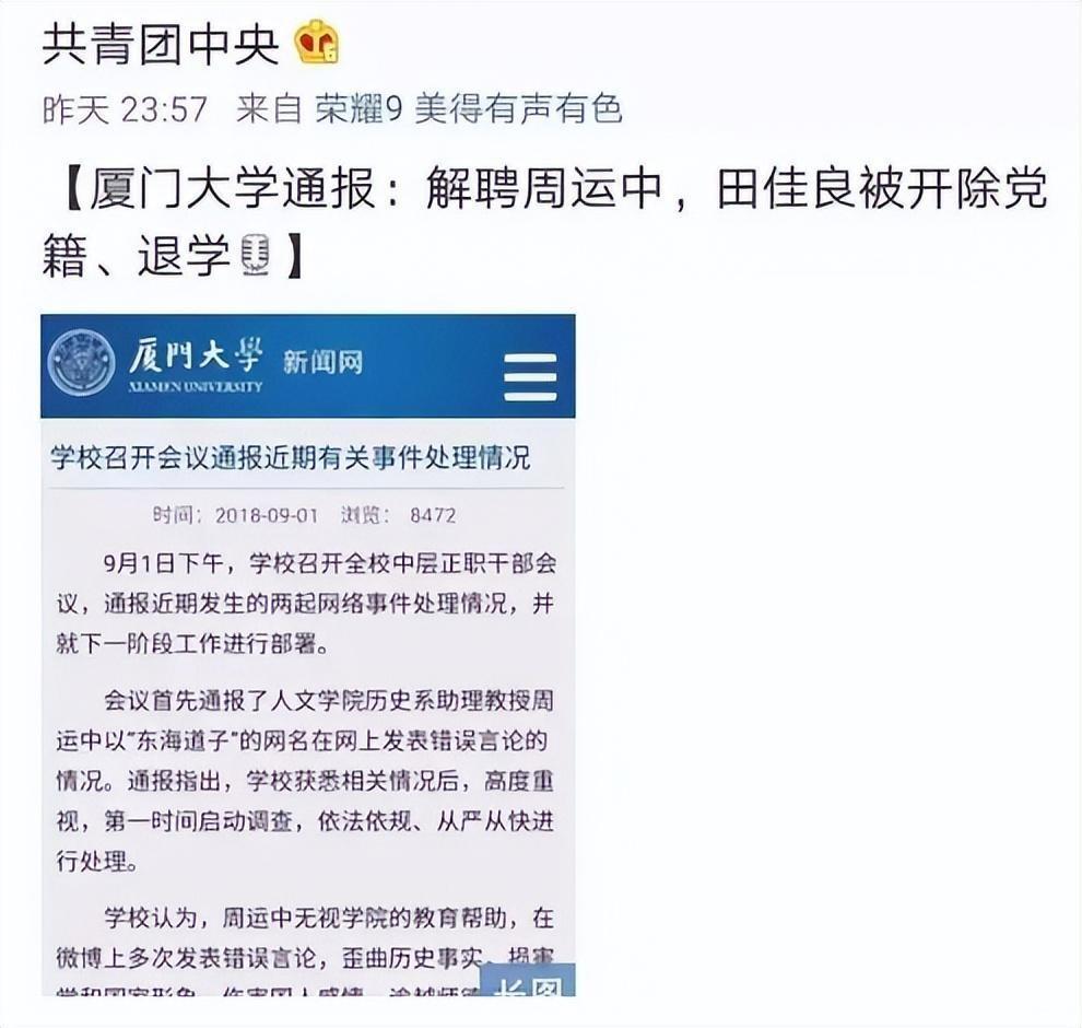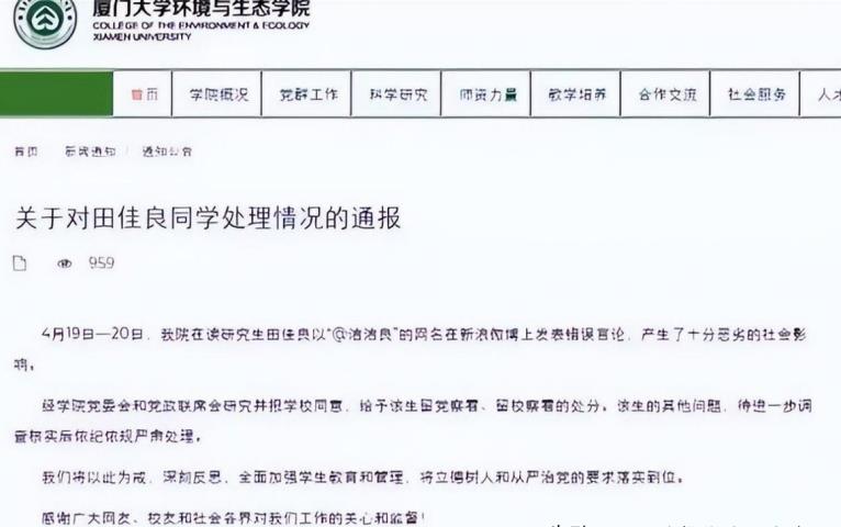 在一切事件明了之后,很快厦门大学就宣布了对田佳良的处罚。