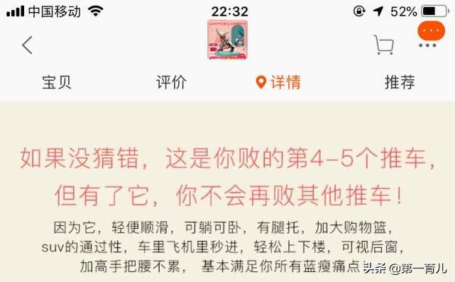 更为讽刺的是,这款问题童车的详情页上,还赫然写着“有了它,你不会再败其他推车”罗列了一堆优点,而关于材料的安全性问题却只字未提