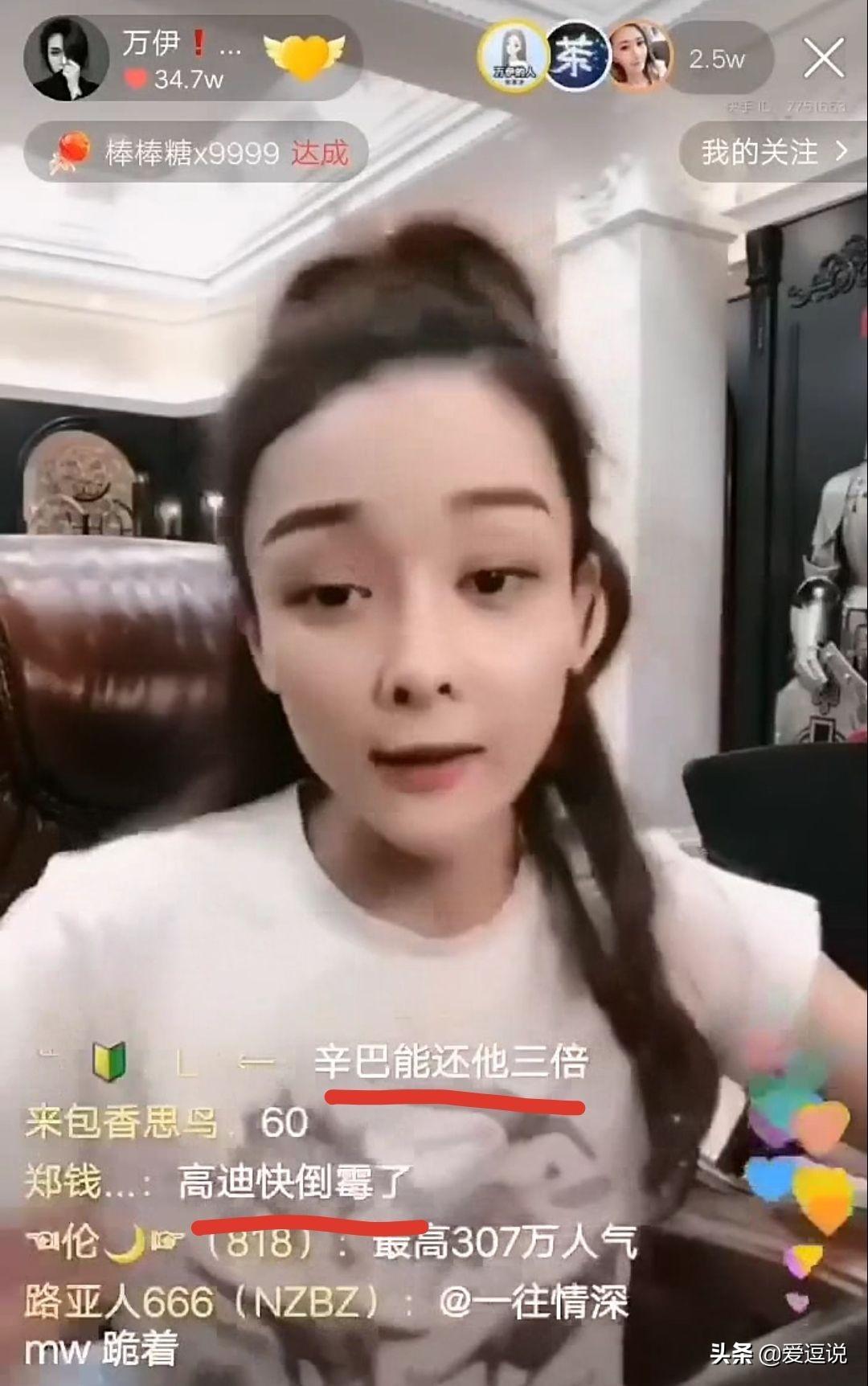 万伊直播时直言高迪婚礼巴哥毋庸置疑会去刷礼物,如果巴哥不去刷,一定会有人说巴哥你活动人家刷那么多怎么怎么地的。巴哥他不会为了这几个钱得罪谁家粉丝,掉粉儿犯不上反正人家不差钱,所以高迪给巴哥刷钱很正常,如果是我我也上,因为钱能挣回来。意思就是高迪道德绑架辛巴呗。