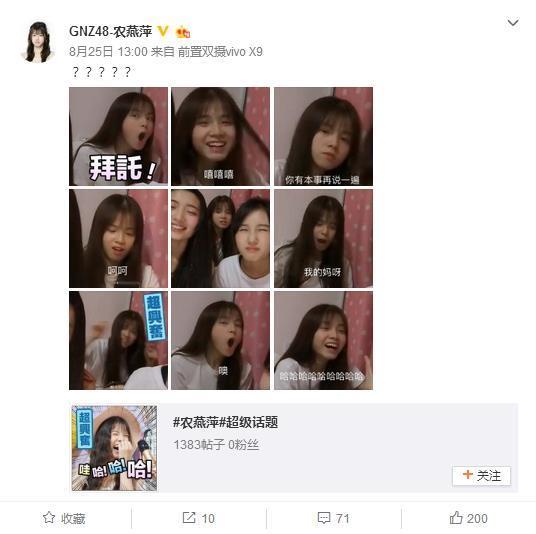 古灵精怪的表情~看出两位的性格属性了吗?~奶瓶(@GNZ48-农燕萍)性格逗比,可爱的女孩子也能成为大家的依靠呢~