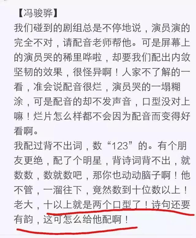早在2011年,季冠霖吧有一个帖子整理过配音演员、吐槽国产影视剧的各种怪现象,其中提及演员说数字代替台词的不止一个配音演员,