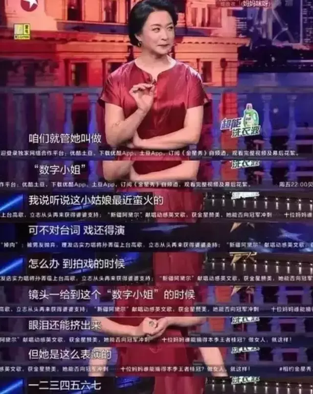 之前金星秀中,金星说这位女演员让自己的生活助理对戏,表演的时候只说数字。流着眼泪深情款款地说出123456想想也是蛮有画面感~