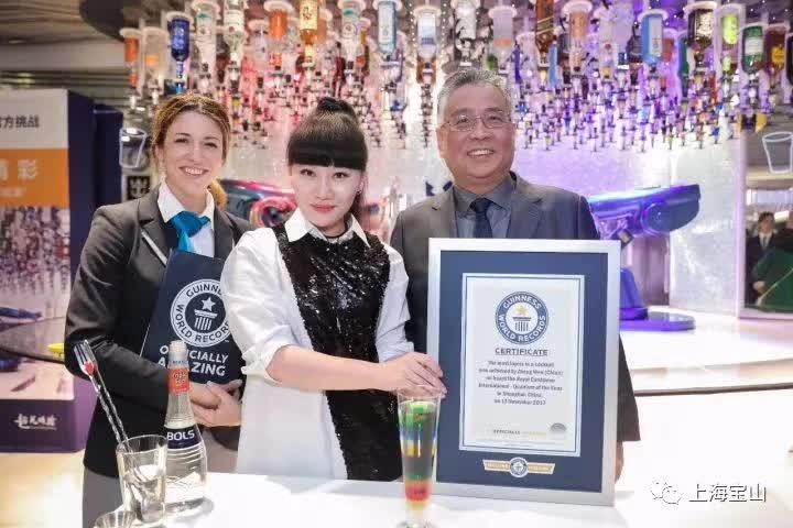 花式调酒挑战中,被誉为“中国调酒皇后”的郑雯在充满高科技感的Bionic Bar机器人酒吧中,向个人的第二项吉尼斯世界纪录发起挑战,精彩地完成10层的鸡尾酒,令人眼界大开。