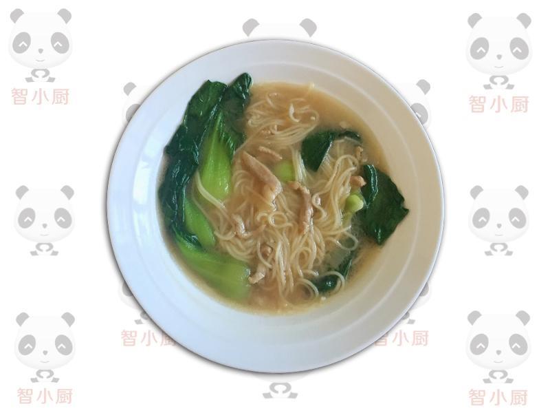 龙须面200克 猪里脊肉1块 小油菜3颗 酱油少量 盐少量