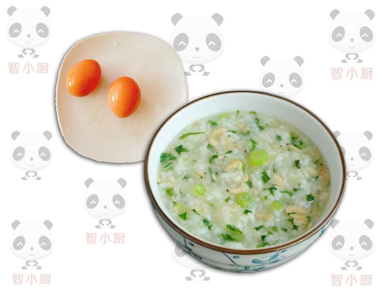 大米75克 无盐虾皮25克 菜心一把 香油适量