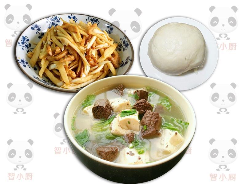 馒头一个+茭白炒肉丝一份+鸭血豆腐汤一份