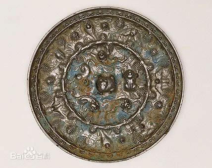 海兽葡萄镜是唐代的物品。海兽葡萄镜是中国古代铜镜制作的最后一个高峰,再以后的铜镜没有比这个再好的了。一般最小的有几厘米的,最大的大概齐有三十多厘米的,不过十五厘米以上的,就算较少的,比较高档的了。它做工非常精细,材料非常好,一般用高锡、青铜铸造而成的,外表感觉也非常好,它的锈色也非常好,铸造也非常精。