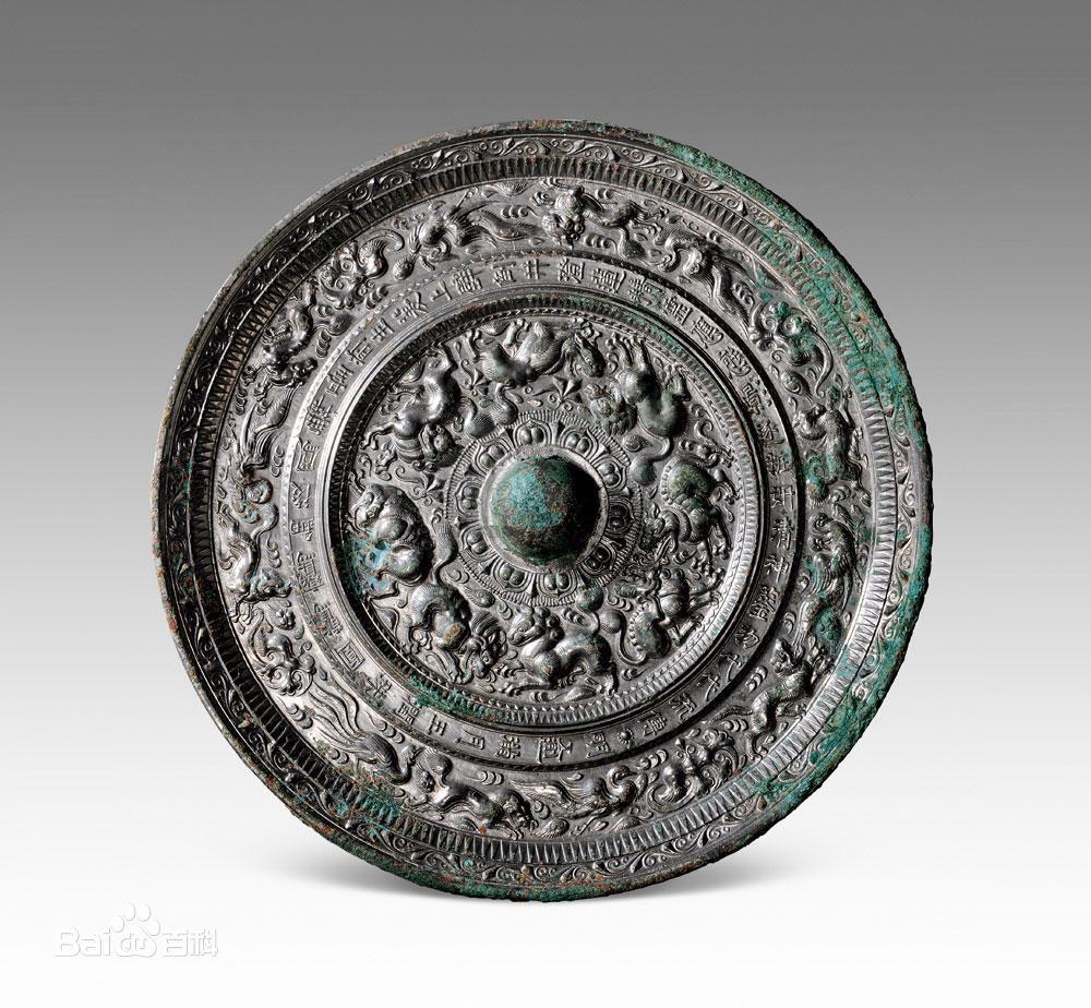 铜镜是我国古代人日常生活中梳装整容的实用品,已有四千多年的悠久历史,各朝各代均有制作。到了水银镜问世以后,逐渐停止了制作。人们喜爱铜镜,不但因它光面能照影,而背面的构思主题更具有艺术的感染力。古代铜镜上有的纹饰的寓意与配置,至今仍有许多解不开的谜,如战国山字纹镜,汉代的规矩纹镜,唐代的海兽葡萄镜等。海兽葡萄镜还竟被中外的学者称之为"多谜之镜"。