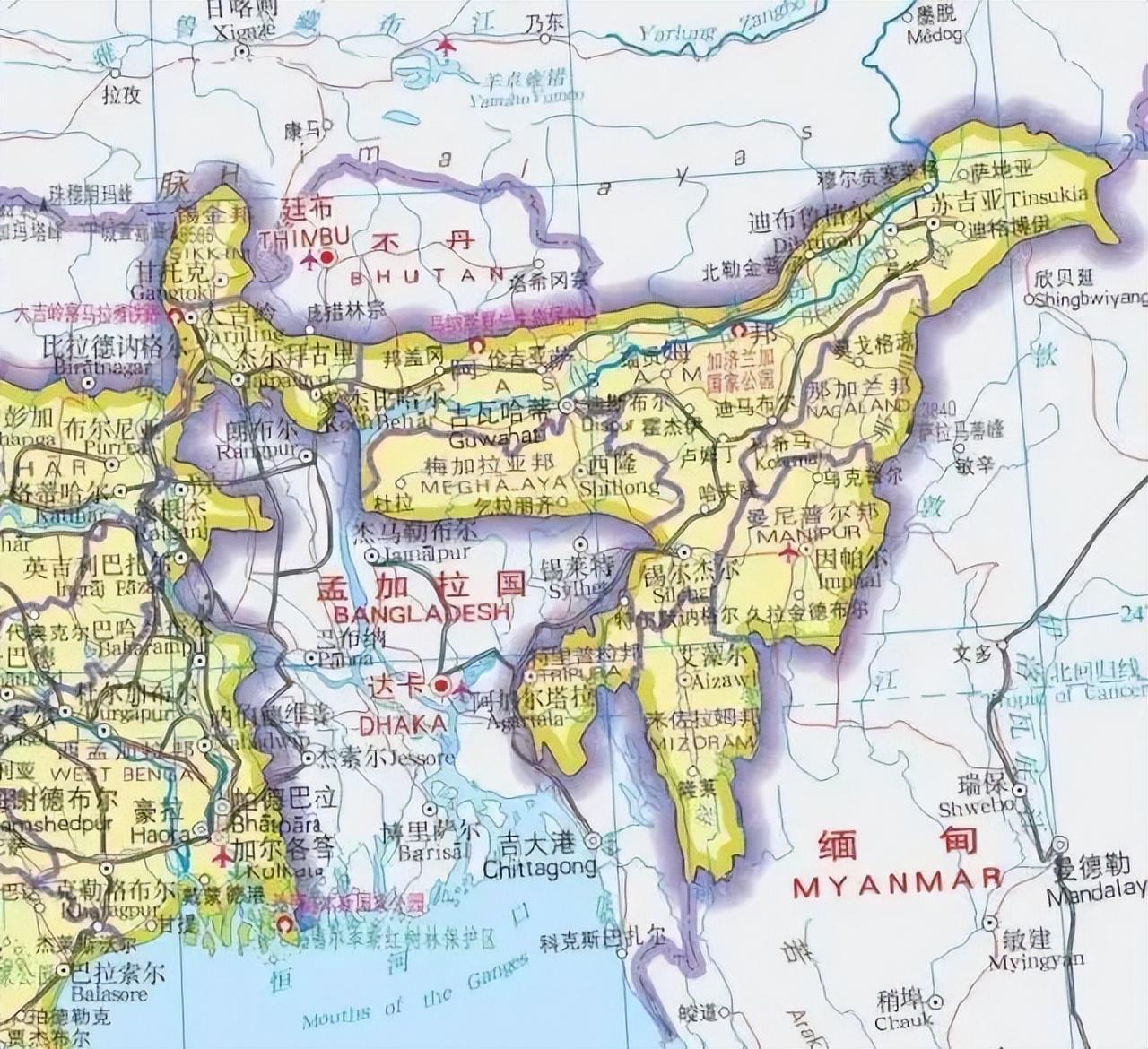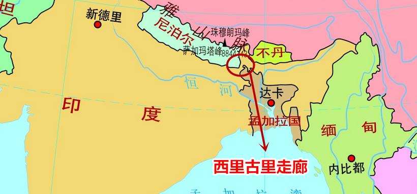 印度为啥一定要全方位的控制不丹?下面一副图就一切尽在不言中,对于印度东北地区实在太重要了。