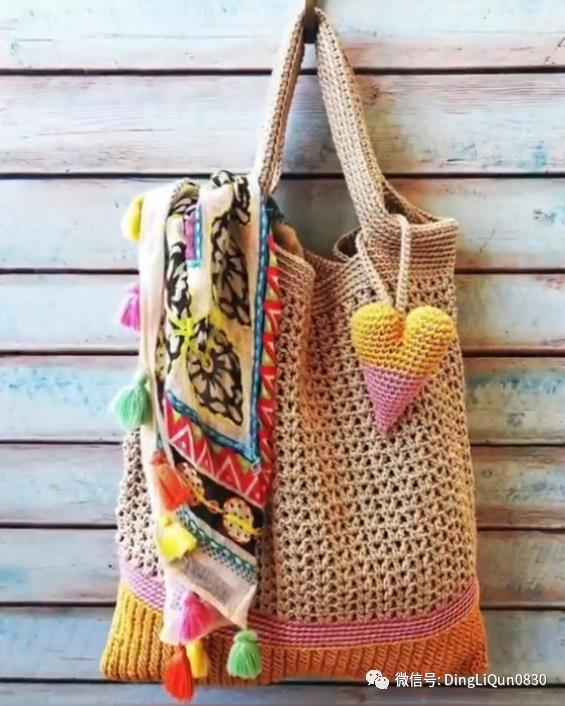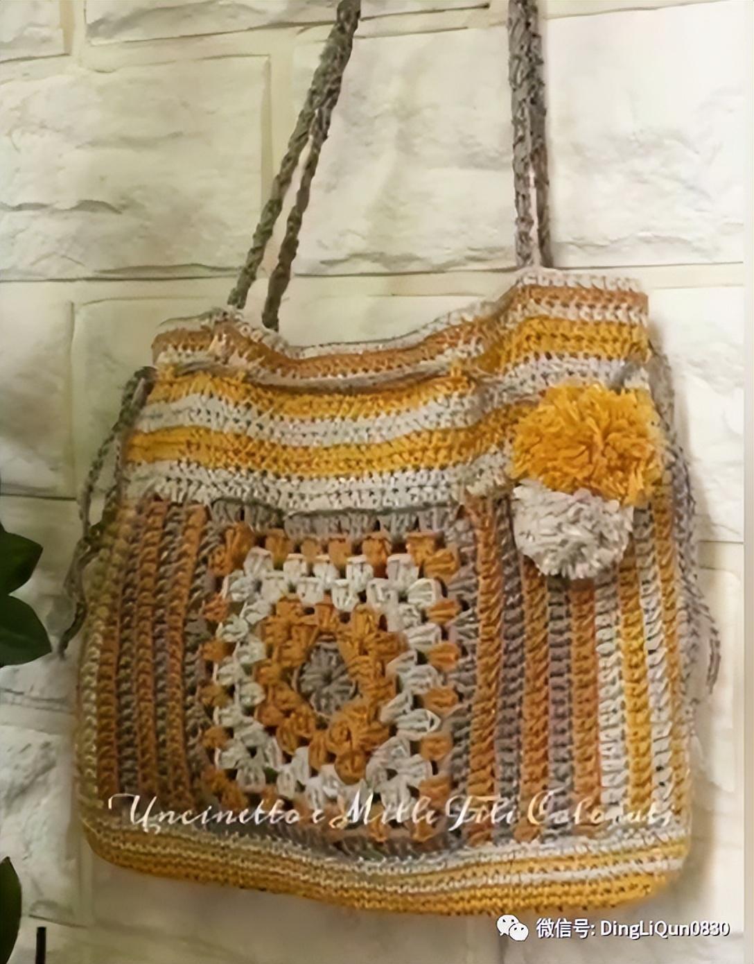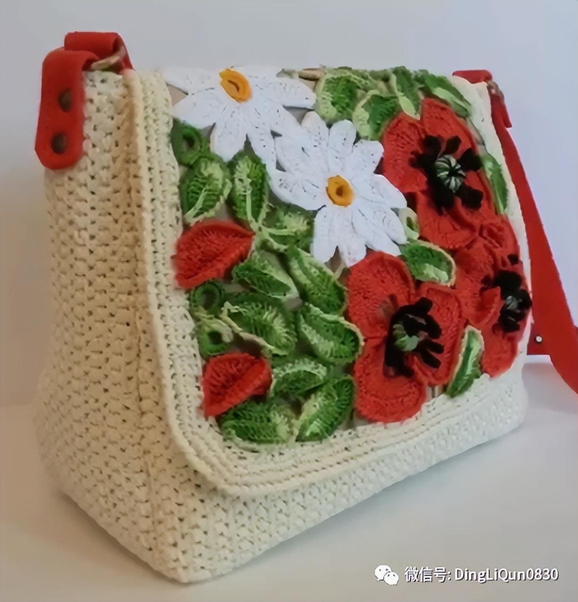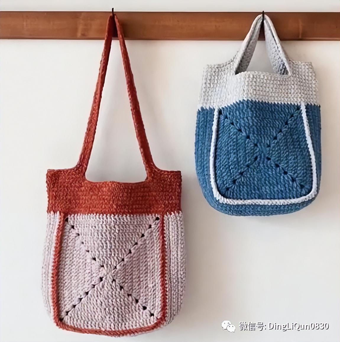 「针织作品」35款美丽的钩花图案单肩包手提包设计