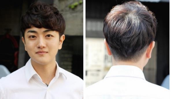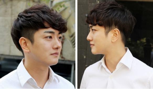如果男生是大脸圆脸的话,那么这种斜刘海的卷发、斜刘海搭配上V字形的后脑勺,还有这种外卷的刘海纹理烫都是很适合你们的哦,有喜欢的小伙伴可以自己来尝试一下削底搭配上蓬松的刘海,又或者是一血斜刘海侧分的发型也是很好看很适合的。