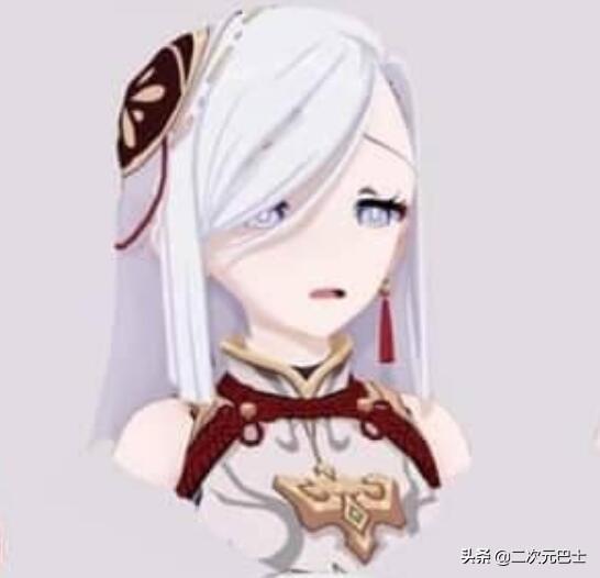 丝滑的白毛及腰长,尾发用神之眼饰物束起,端庄又优雅,看上去仙气十足。这个细节看起来还是挺真的,看神之眼跟角色饰物的结合,以及服饰的严格对称设计,这很符合米哈游美工一贯的风格。