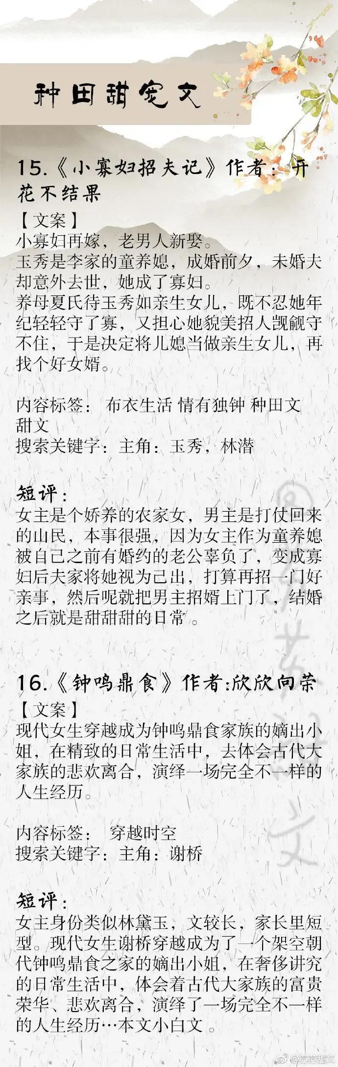 最暖心的18本经典甜宠小说,温馨甜蜜一样都不少超级温馨治愈的种田文,推荐 !