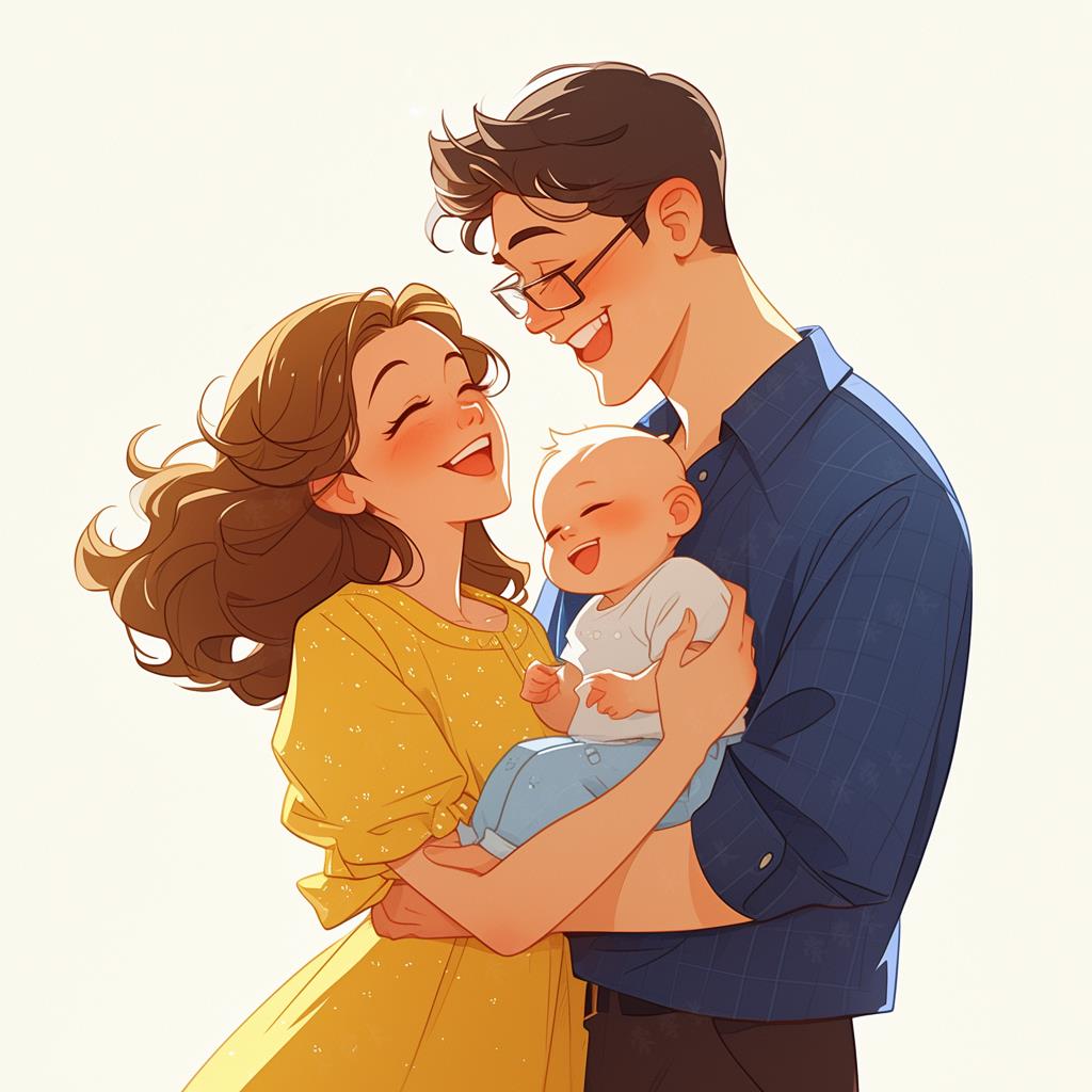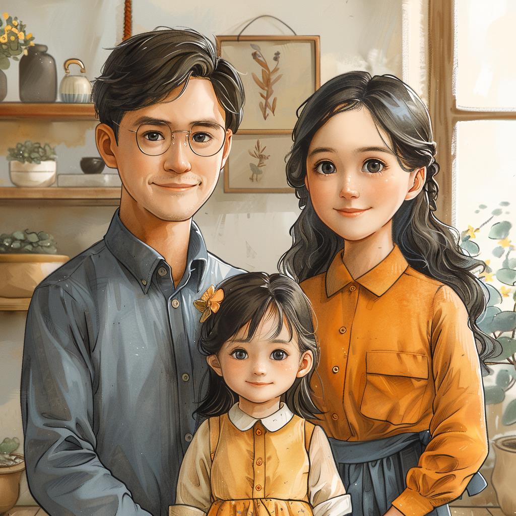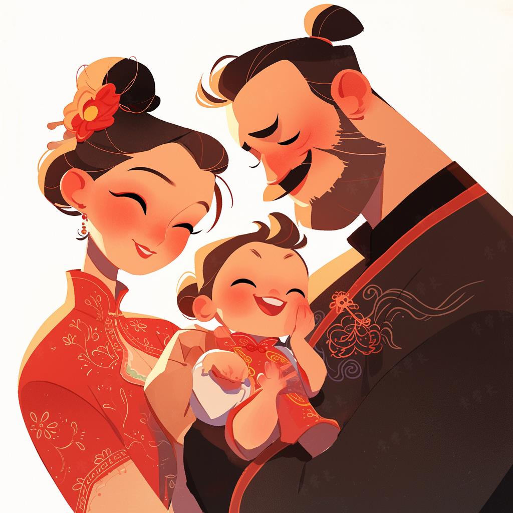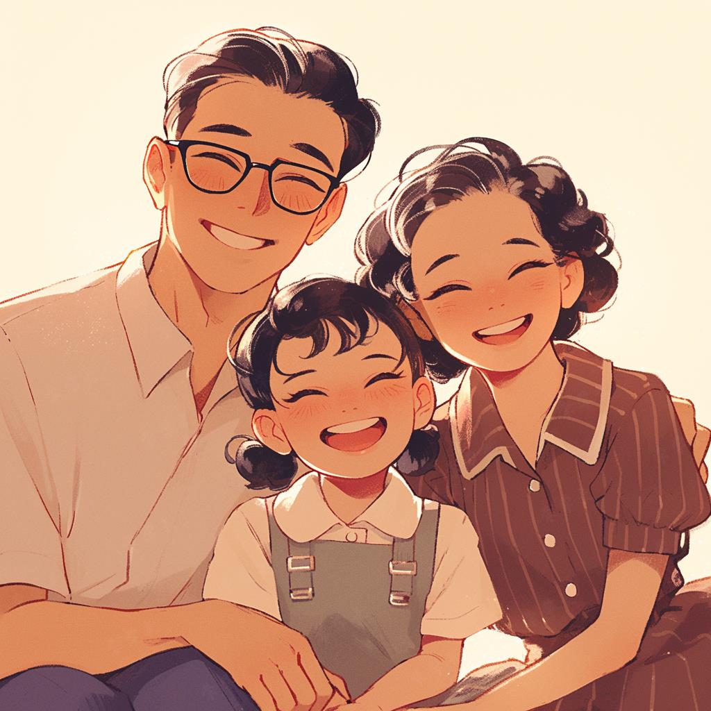 亲子头像 - 幸福的一家三口小公主创意头像设计