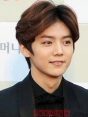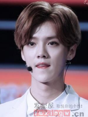 很适合瓜子脸男生的一款蓬松的中分短发造型,棕色系的发色,搭配上白净的俊脸,时尚帅气最迷人。