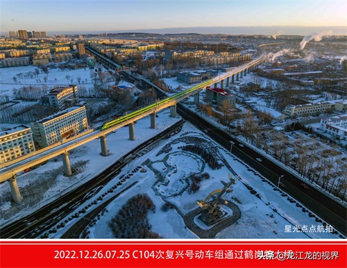 2022年12月26日早7点15分,随着鹤岗开往佳木斯的c104次复兴号CR200J型动力集中电动车组城际列车驶离鹤岗站一站台,边城鹤岗人民期盼已久的在家门口乘坐动车组出行的梦想终于在2023年新年前得以实现,特别是新年春节期间远在外地的家乡人,在三年的疫情严格管控放开后,也方便回家与亲人团聚了。