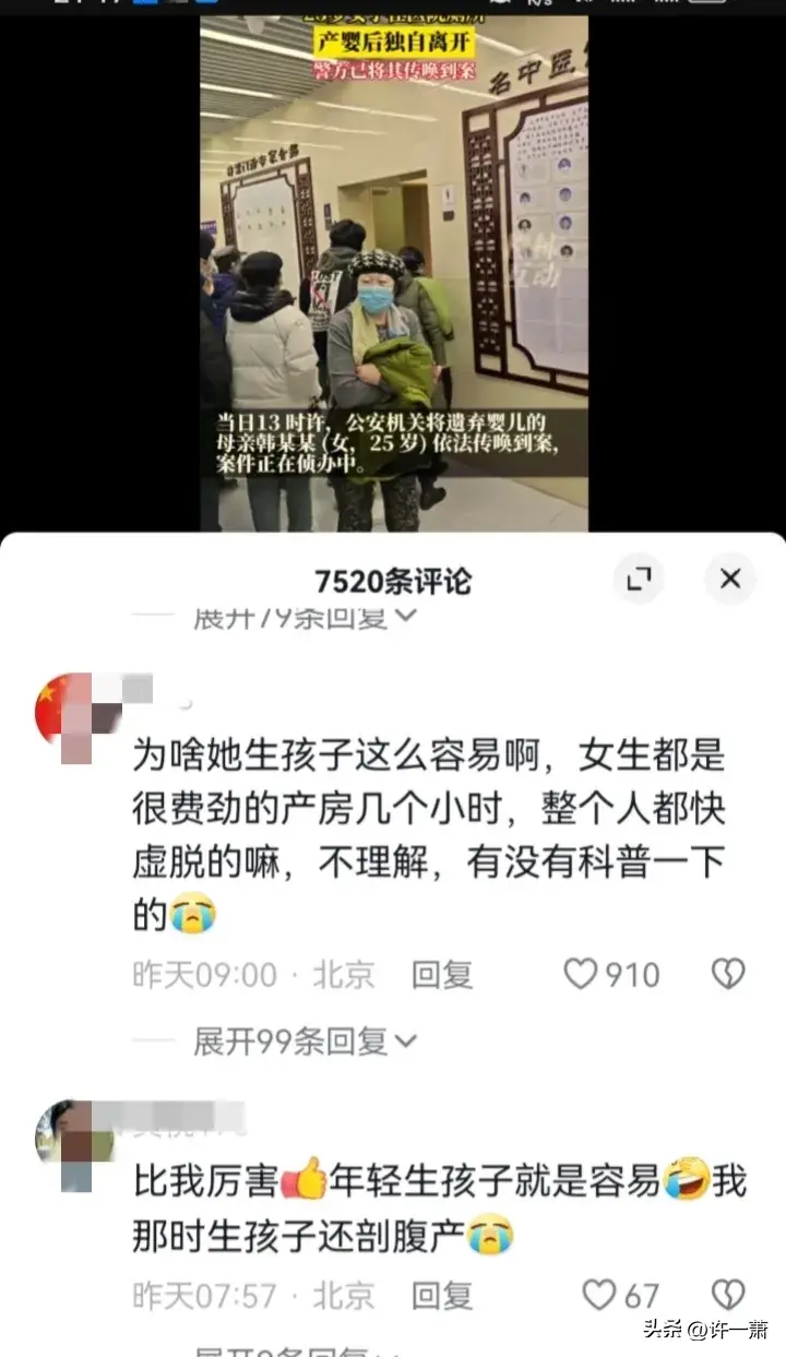 刚刚看了很多网友的评论,五花八门,很多女性同志都在描述自己生孩子时的场景,看到这个新闻后,也觉得很是奇怪。