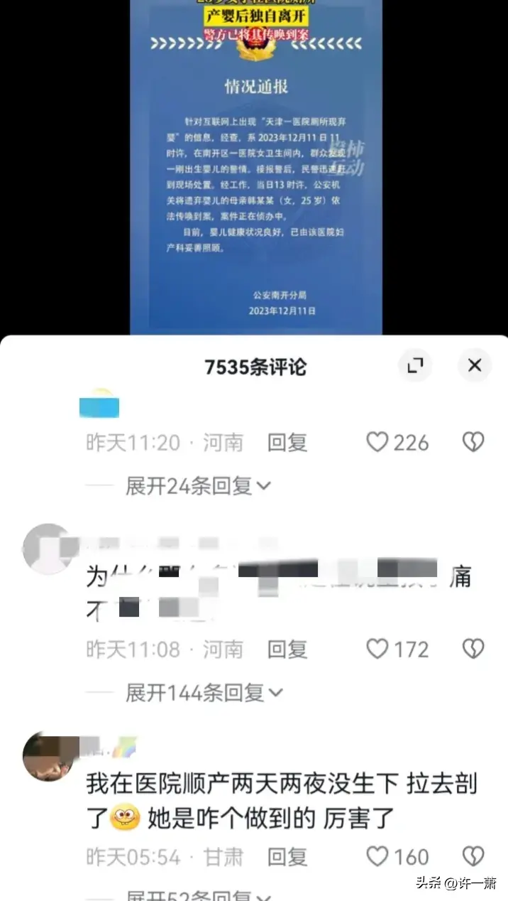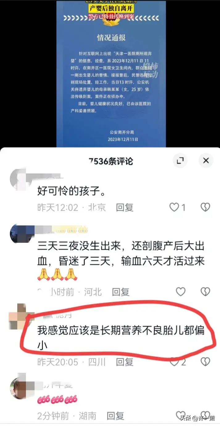 刚刚刷抖音的时候,看到一则新闻,新闻报道说,在12月11日天津市南开区一医院发现一婴儿被遗弃到厕所内。