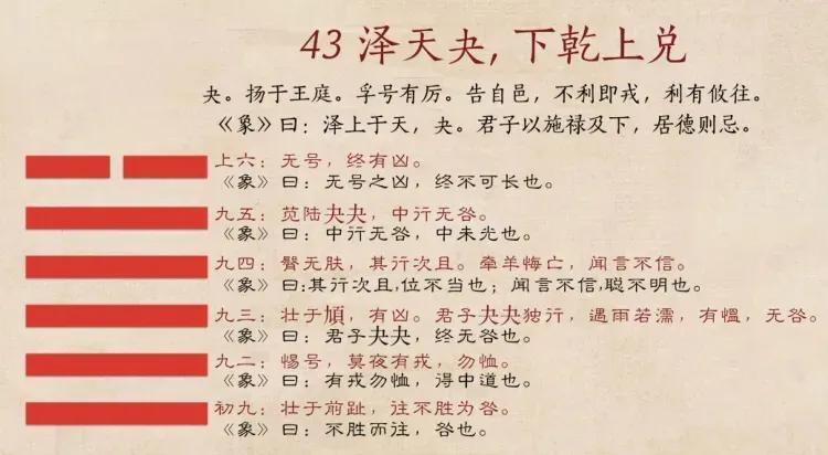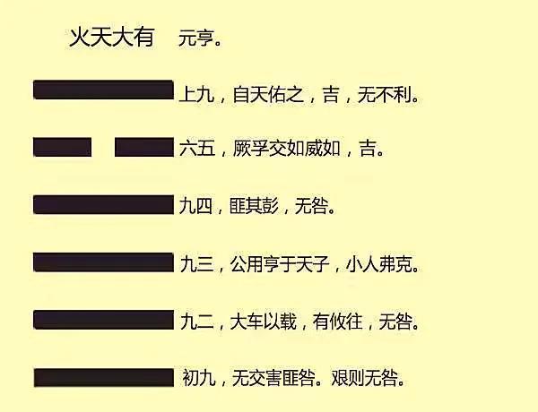 卦辞:元亨利贞。元是创始,注意,只有乾卦有无限的创造力,乾卦的元才有资格称为创始,剩下的所有卦的元字只能是开始,它们没资格称创始。亨,亨通,通达。前期准备工作做得好,通达是自然的。利是适宜,或做某事合适,也可称获利。贞,正固,贞正,众多大师翻译成坚守正道,坚持走正道。。另:元,大的意思。亨;享祭的意思。利:有利的意思。贞:占问。连起来:筮遇乾卦,可举行大享之祭,是有利的占问。