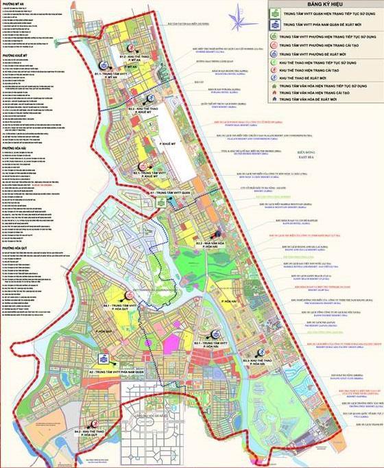 越南岘港市的行政区划地图如下所示,五行山郡就是右下角粉色的部分。