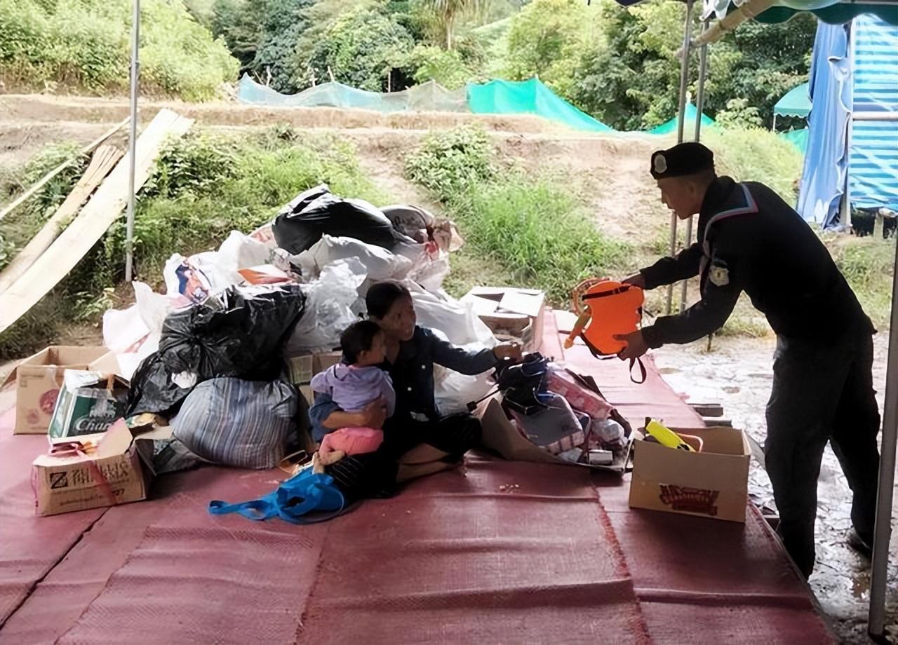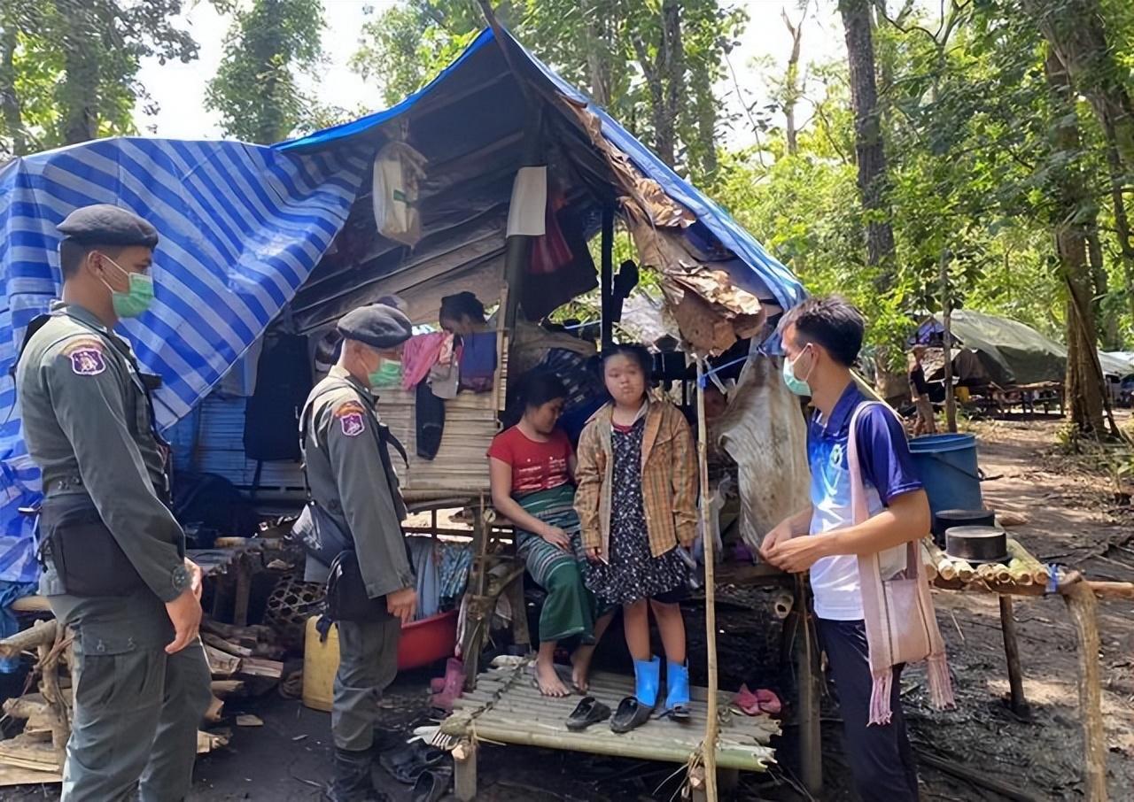 根据报道,泰国边境的一个临时营地里,夜丰颂府的泰国边境警察正进行巡逻。这个营地居住着一个缅甸难民家庭,他们因战乱而逃到了这里。截至2023年7月17日,泰国夜丰颂府已有超过9000名缅甸难民来到此地,逃难人数还在不断增加,他们大多数来自克伦族。