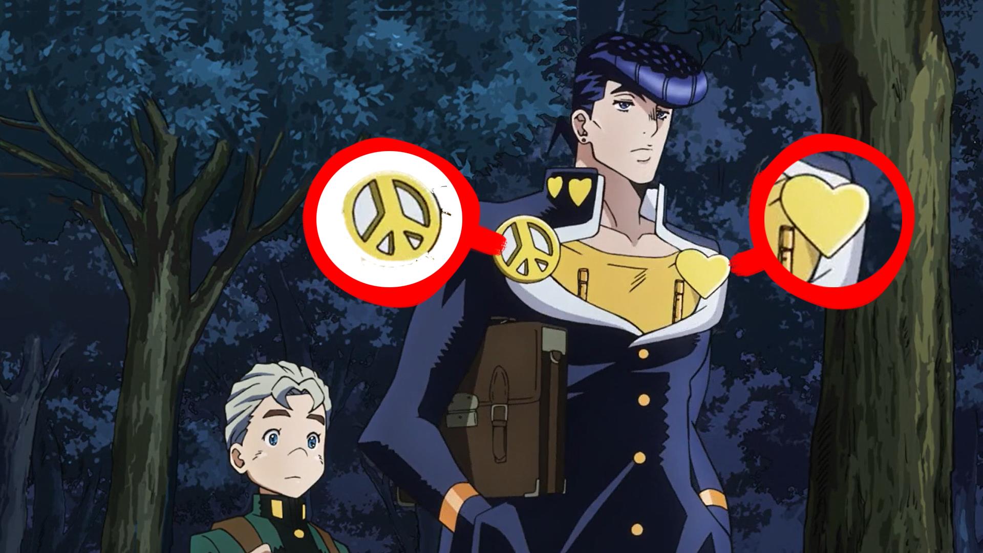 其实说这些还是回归正题!第四部不灭钻石不同之处就连东方仗助的胸口装饰就能体现出来。不知道大家有没有关注过仗助胸口上的两个“标牌”。