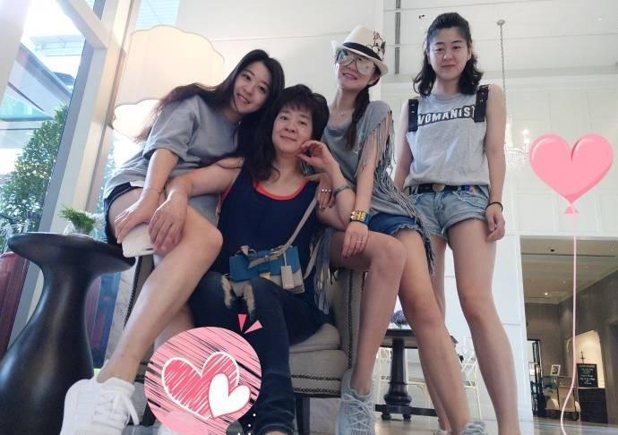 这个是三个人和妈妈合照呢,妈妈看起来好年轻啊,而且感觉一家人很有爱啊,妈妈跟其他三人长的太像了,妈妈好幸福啊,有那么漂亮的三个女儿,还有一个明星呢,出去应该脸上很有面子吧,感觉三个人都没有遗传到爸爸基因呢,全部遗传了妈妈基因,感觉还是美美哒,妈妈年轻时候肯定跟她们一样很年轻,很漂亮。