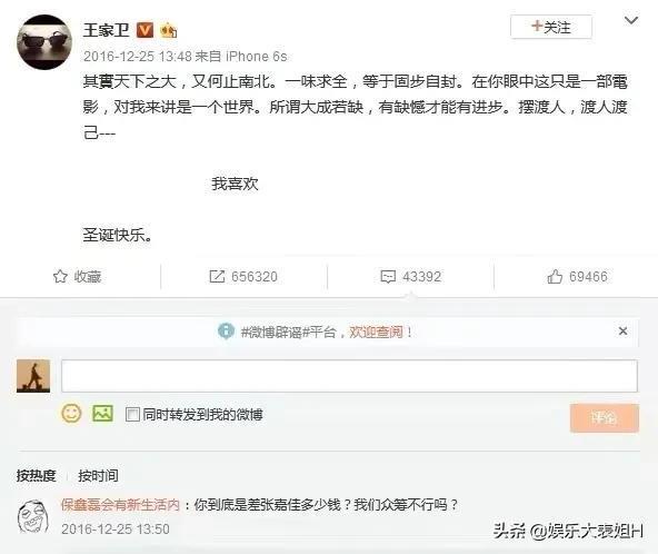 之后半个娱乐圈都转发支持了王家卫。
