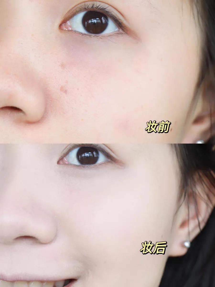 整体肤色非常提亮,而且很轻薄,很自然,一点都不会卡粉浮粉。