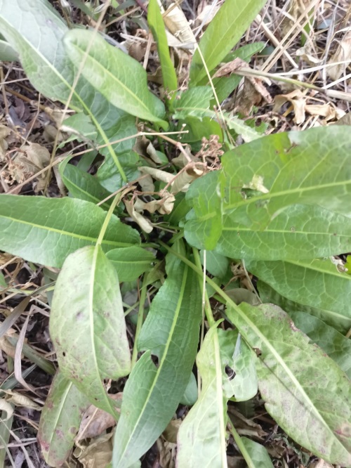 羊蹄,又名野菠菜,一年生草本,叶片宽大,像麦叶一样。冬季里,其他的杂草都枯黄,冻死了,但是它还是特别翠绿,耐寒冷。常生长在田野、溪边处,牛并不吃这种植物,我们也从来没有挖过。该草还能用于疥癣,皮肤瘙痒,难怪看过有人摘这个,在脚上痒的地方使劲搓,搓的一只脚都绿了。